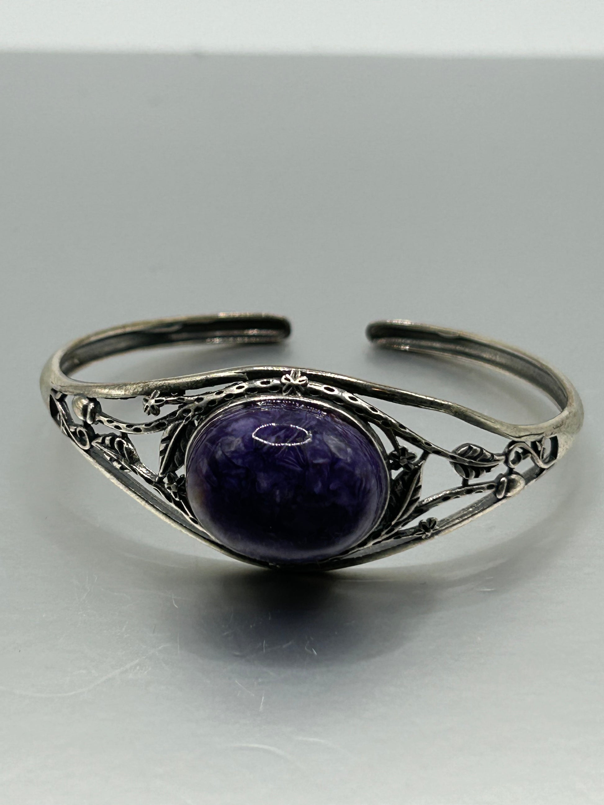 Bracelet, 925 Sterling Silver Cuff- Charoite